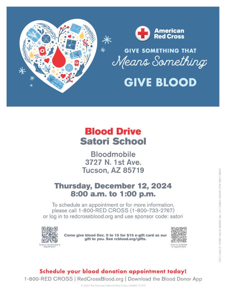 Charter Families(Grades 2-8) RSVP to Susan Marcus at 520-293-7555 or susan@satorischool.org